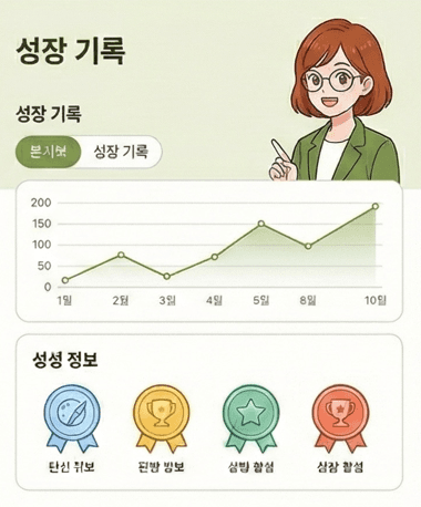 개인 맞춤형 성장 지원: 링키가 사용자의 취미를 분석하고 맞춤형 활동을 추천하는 것처럼 , 이 성장 기록은 개인이 어떤 분야에서 성장하고 있는지 명확히 보여주어 개인 맞춤형 성장 지원이라는 기대 효과를 실현합니다.
